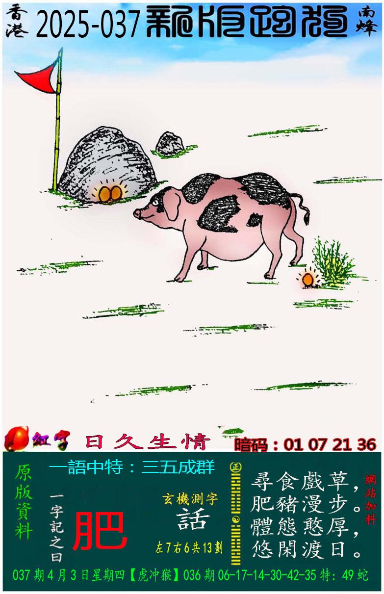 037期新版跑狗一字記之曰:【肥】 玄機測字:《話》 一語中特:四方八面