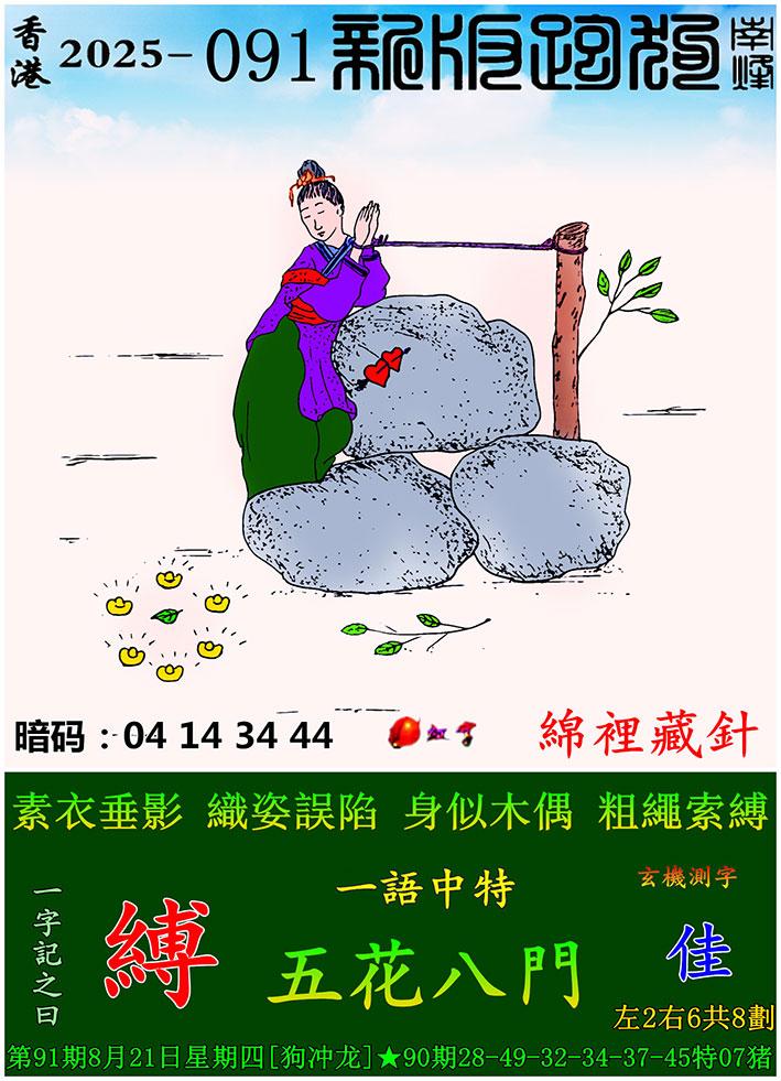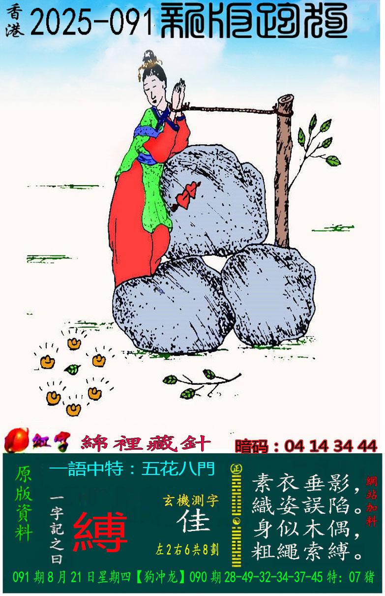 091期新版跑狗一字記之曰:【縛】玄機測字:《佳》 一語中特:五花八門